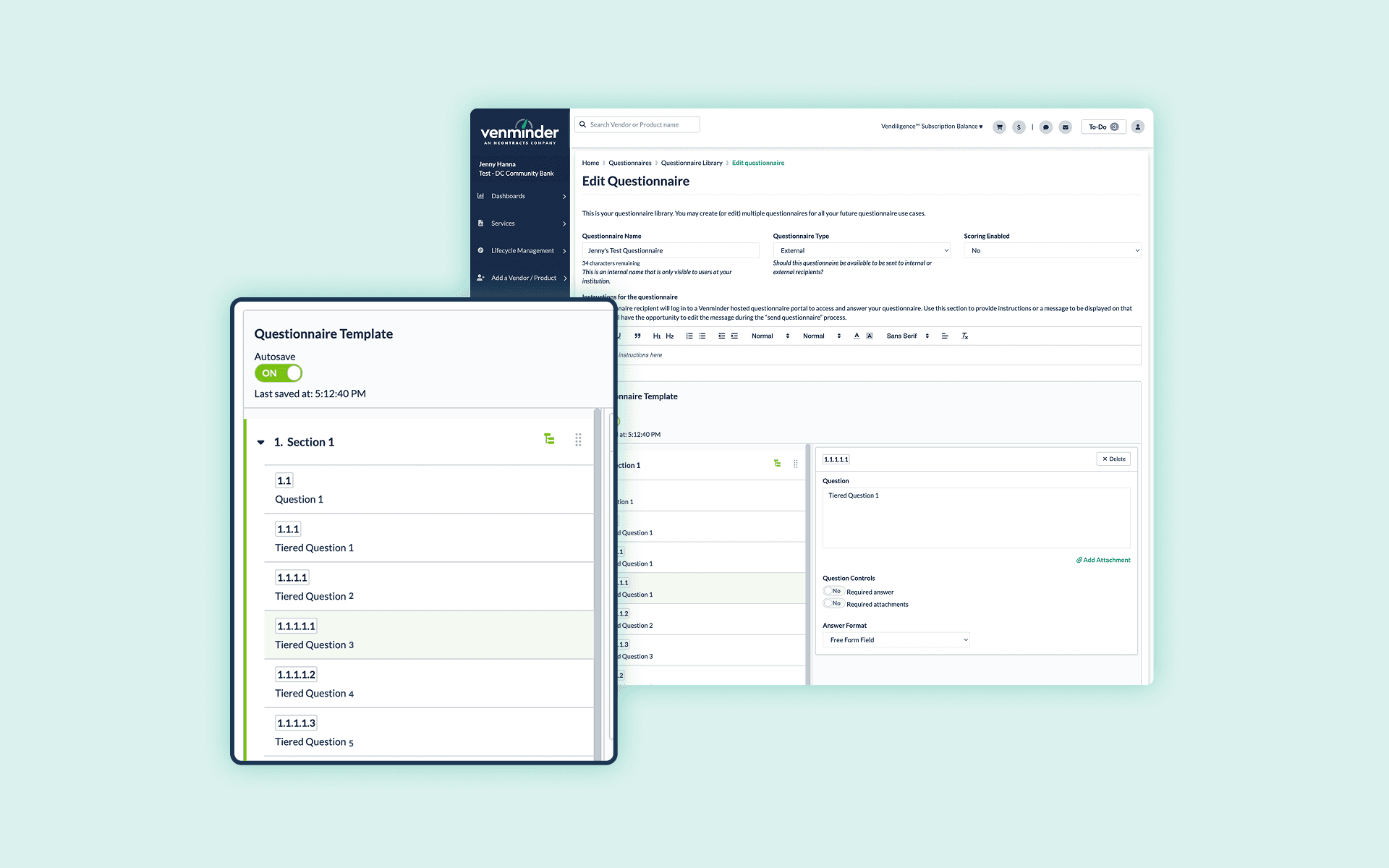While the Venminder platform had a functional vendor questionnaire feature, the current state only supported the addition of one child question and not a multi-tier approach.