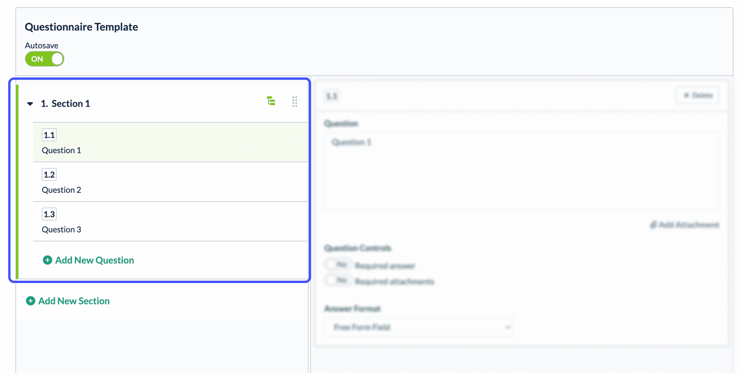 Questionnaires > Create New Template