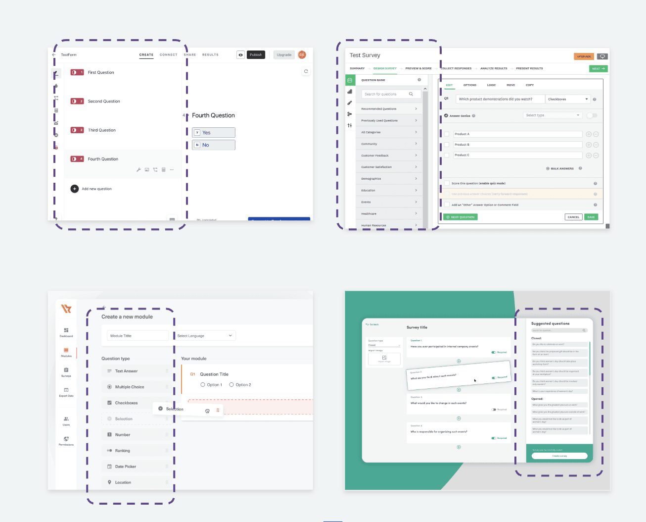 Competitive analysis showed that leading popular questionnaire platforms use a two-panel UI to manage tiered questionnaires, visually separating question hierarchy from question details.